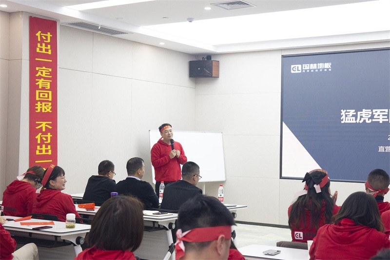 經過歡快的熱場舞蹈,小伙伴們精神抖擻,接下來國林地板董事長發表致辭,對十月份全員的拼搏奮斗精神表示贊揚,并詳細介紹了公司戰略以及人才計劃,鼓舞大家堅定信念,全力參與,力求打好年終攻堅仗。