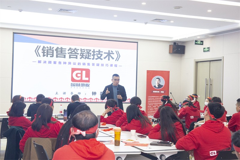 為進一步提高國林地板團隊的工作效率和能力,國林地板鐘老師針對心態+話術為大家進行了簡單的培訓。