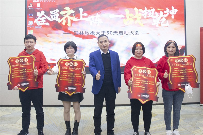 國林地板的戰士們紛紛做出公眾承諾,并在董事長的見證下立下了軍令狀,君之有令,必達使命!