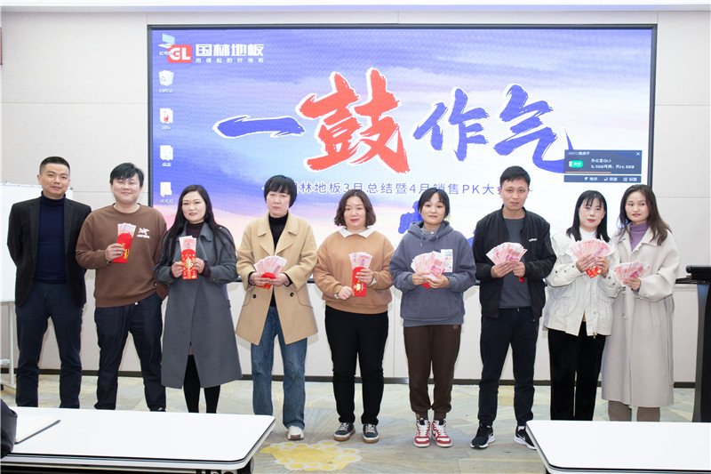 坤總針對(duì)3月份及1季度任務(wù)完成的情況存在的不足與問題進(jìn)行了分析,對(duì)國(guó)林家人3月份做出的成績(jī)表示肯定。卓越的成績(jī)來之不易,表彰不僅是對(duì)努力付出、突破自我的嘉許,更是激勵(lì)國(guó)林地板全體人員奮力拼搏的動(dòng)力。在全場(chǎng)熱烈的掌聲中,國(guó)林地板領(lǐng)導(dǎo)向3月完成PK目標(biāo)的家人頒發(fā)了獎(jiǎng)金。過去的終將會(huì)過去,未來仍需努力,希望大家鼓足干勁,秉著不屈的精神和必勝的信念再接再厲,勇創(chuàng)佳績(jī)。
